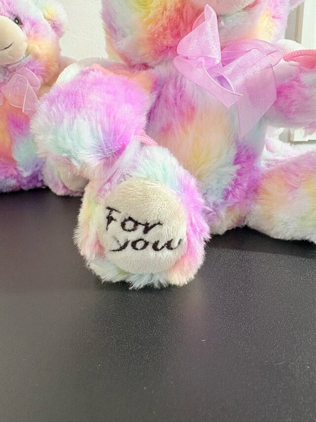 天使の羽がついたエンジェルくまのぬいぐるみ、名前は「フラップ」。ふんわり優しい笑顔に癒されます。